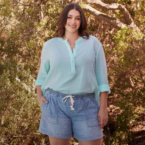 Style it tucked into linen pants for relaxed summer days, or pair with denim jeans for an easy weekend look. For a dressier take, team it with a flowy midi skirt and sandals – the lace trim on the sleeves instantly lifts your outfit from casual to refined.